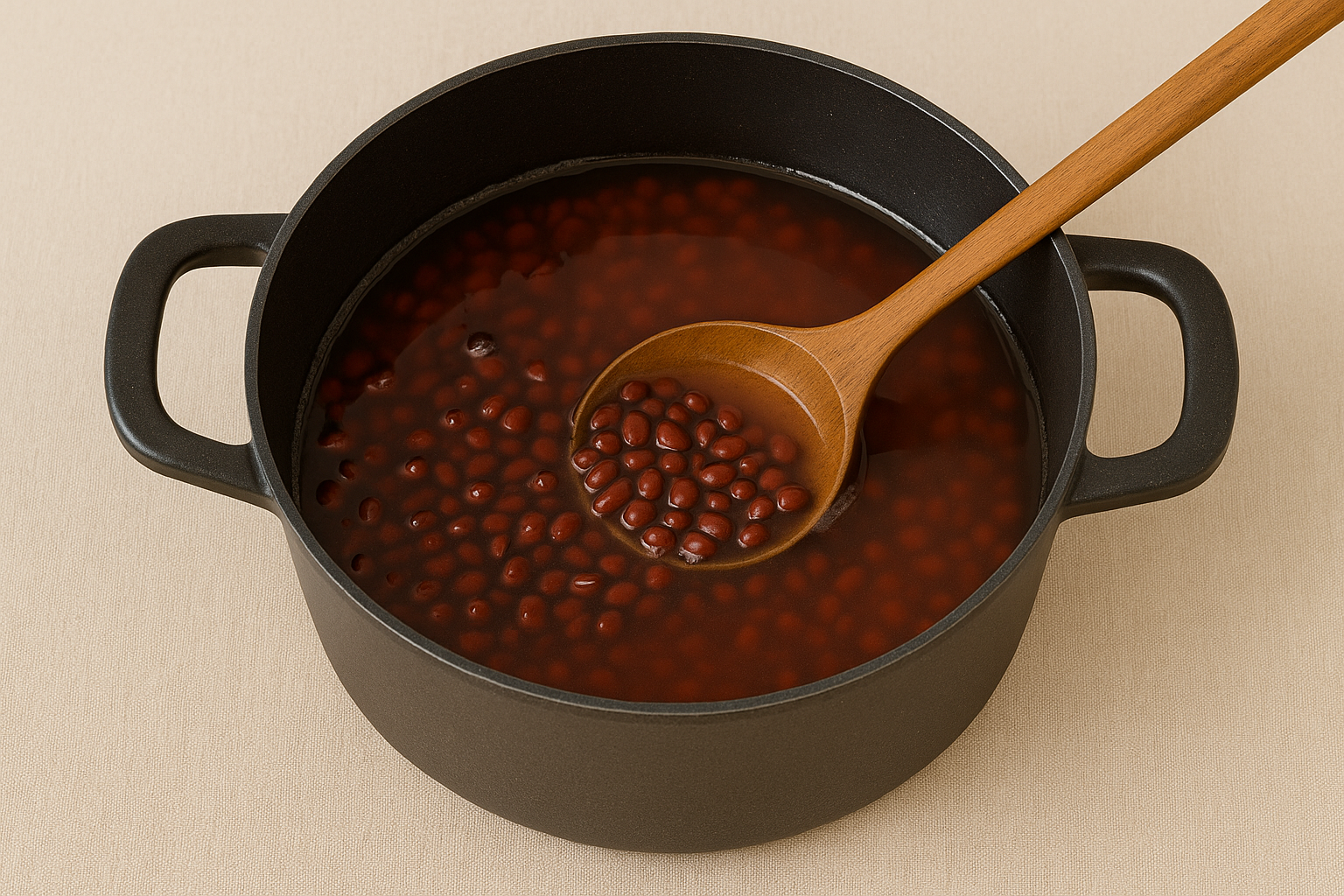 - 팥을 흐르는 물에 깨끗이 씻고, 냄비에 팥과 물을 넣어 끓입니다.