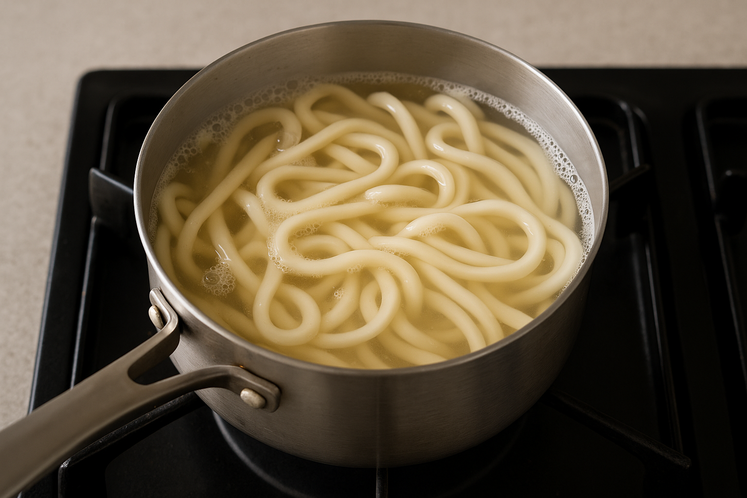 우동면은 끓는 물에 데쳐 찬물에 헹구고 물기를 빼 준비합니다.