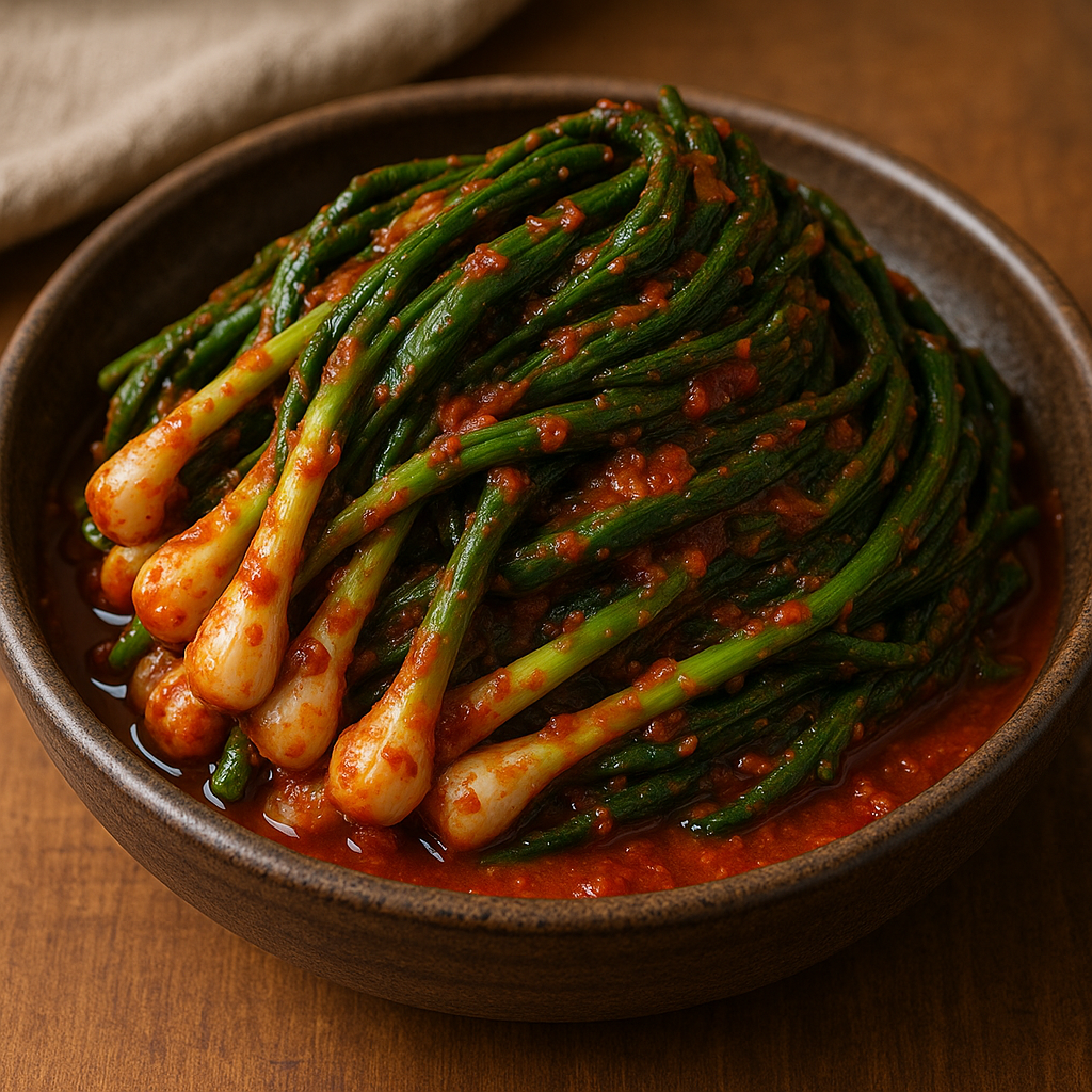 은은한 파향과 매콤한 양념이 어우러진 파김치는 밥반찬은 물론 고기 요리와도 환상의 궁합을 자랑하죠!